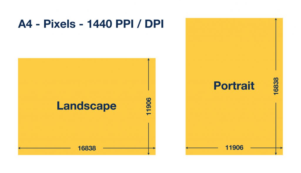 By default, a setting of 300 DPI is often requested. Because this gives a nice and sharp print on A4 size. But if you want to know for sure how many pixels your A4 size should be made up of, please check with the printer in how many DPI you need to provide the file. Based on that you can calculate the number of pixels.
